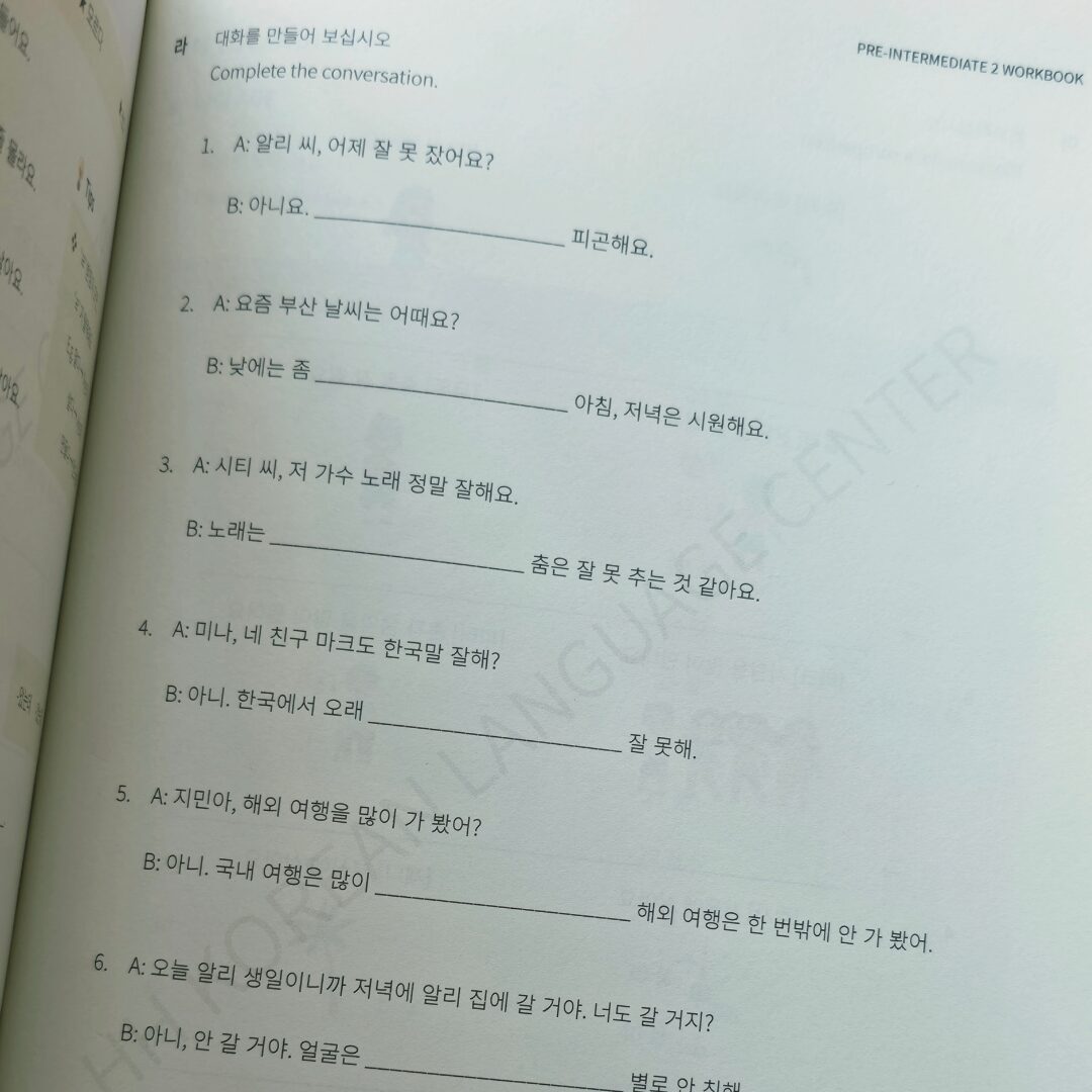 HH Korean Workbook: Pre-Intermediate 1 & 2 (physical)