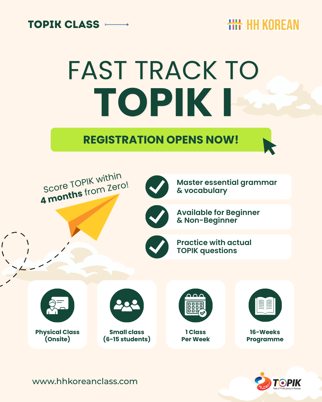 - Full Payment (16 sessions) + TOPIK I Workbook