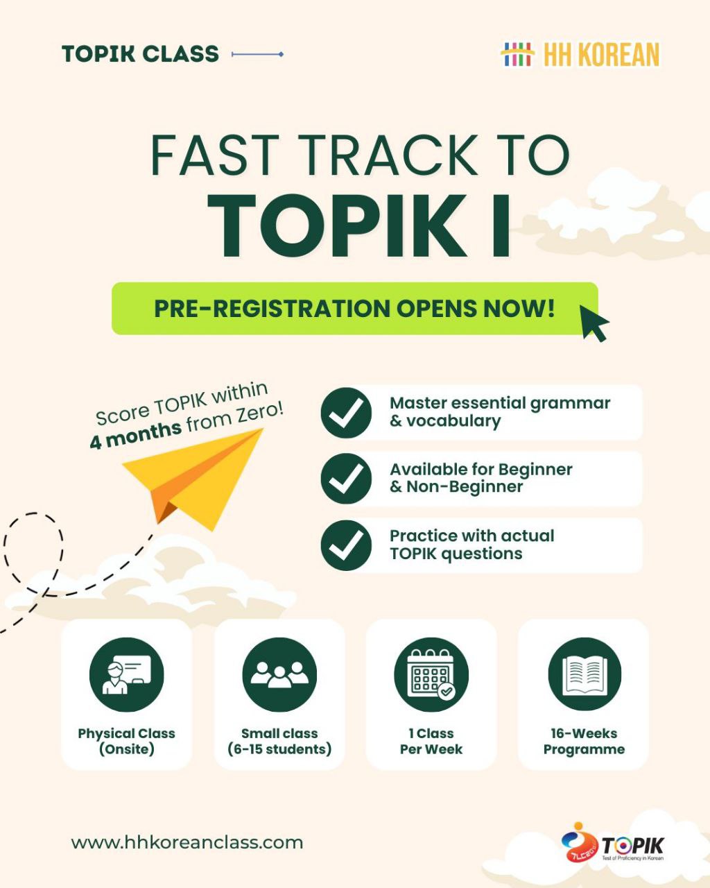 - Full Payment (16 sessions) + TOPIK I Workbook